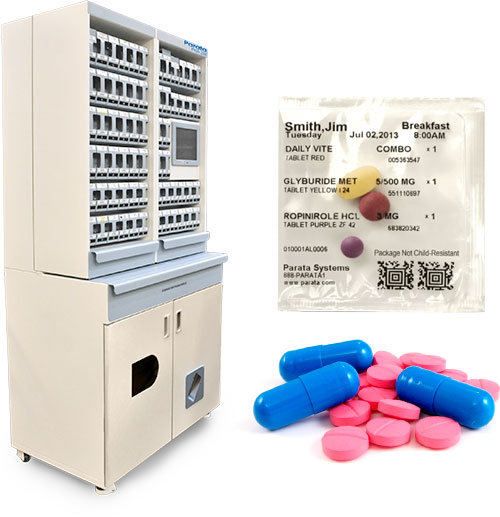 We make it easy for patients to take the right medication at the right time, every time. With our Parata PASS packager, we can organize your multiple medications into multi-dose packages, replacing bulky blister packs and cumbersome medication planners. Your medications can be organized by day and time of dose in clearly labeled plastic pouches.